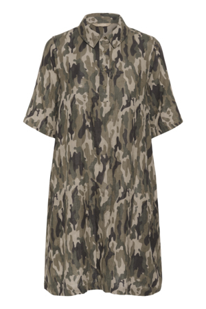 Knælang Culture kjole i dden blødeste bomuldskvalitet. Kjolen har A- facon, korte ærmer, krave, stolpelukning og lommer i siden. Skøn afslappet og behagelig sommerkjole.
