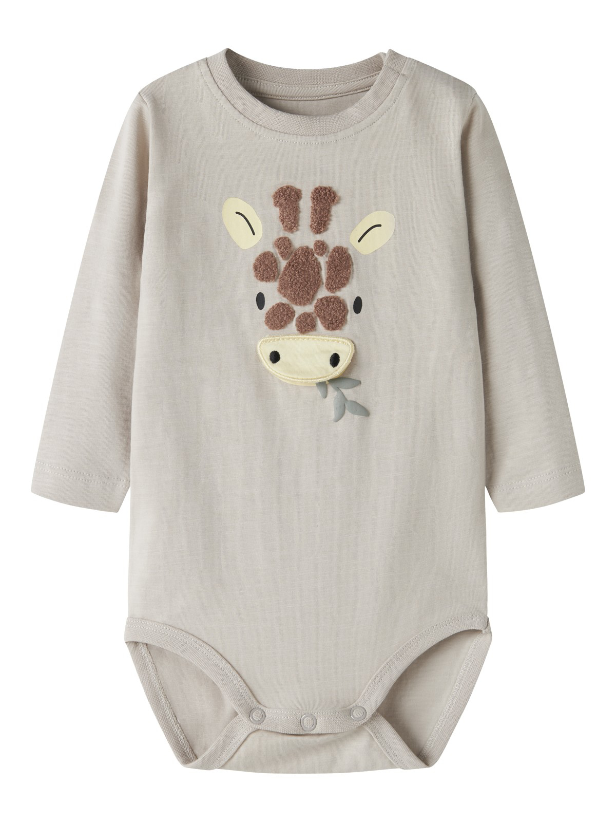 Lækker basis Hummel Body til drengene med gummiprint. Den har praktiske trykknapper ved skulder og gylp.