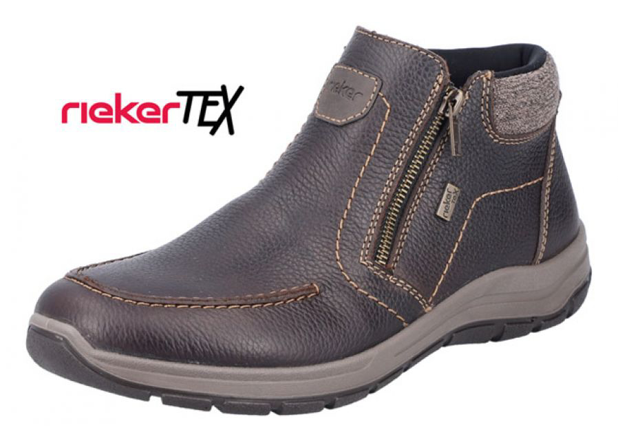En flot Rieker støvle til herre i brun. Støvlen er med fine detaljer langs siden og bagpå samt en mørkere nuance på snuden, der giver et smart touch. Støvlen lukkes med lynlås i siden og snørres.