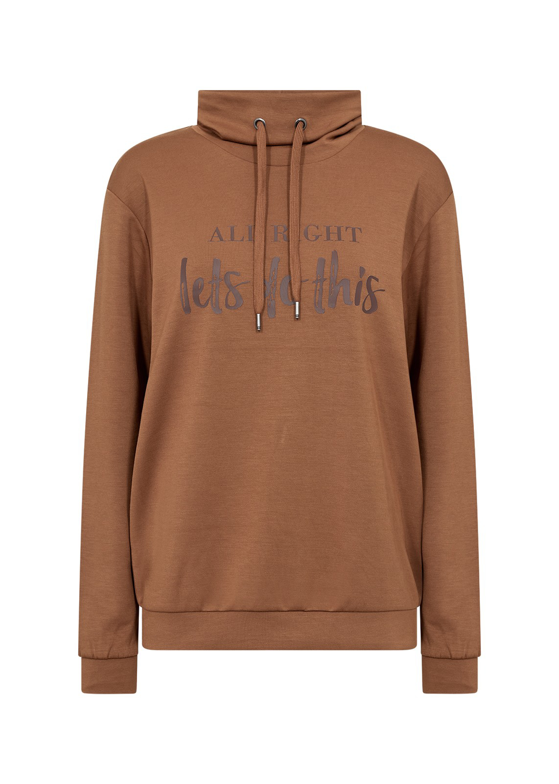 Poulær Banu sweatshirt fra Soya Concept med den karakteristiske høje hals med snøre. Blusen har lange ærmer, afslappet og løs pasform samt tekst foran.