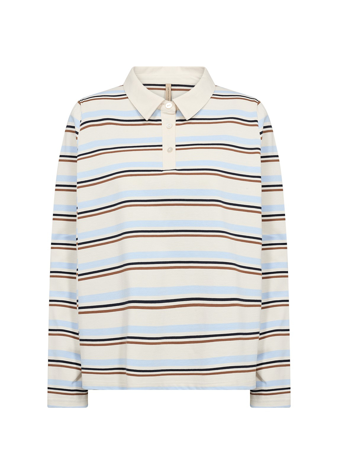 Super smart Polo T-shirt fra Soya Concept. T-shirten er stilfuld og smart med den klassiske krave, stolpelukning og et smart stribet mønster. Style den den til dine ynlings jeans for et smart afslappet look.