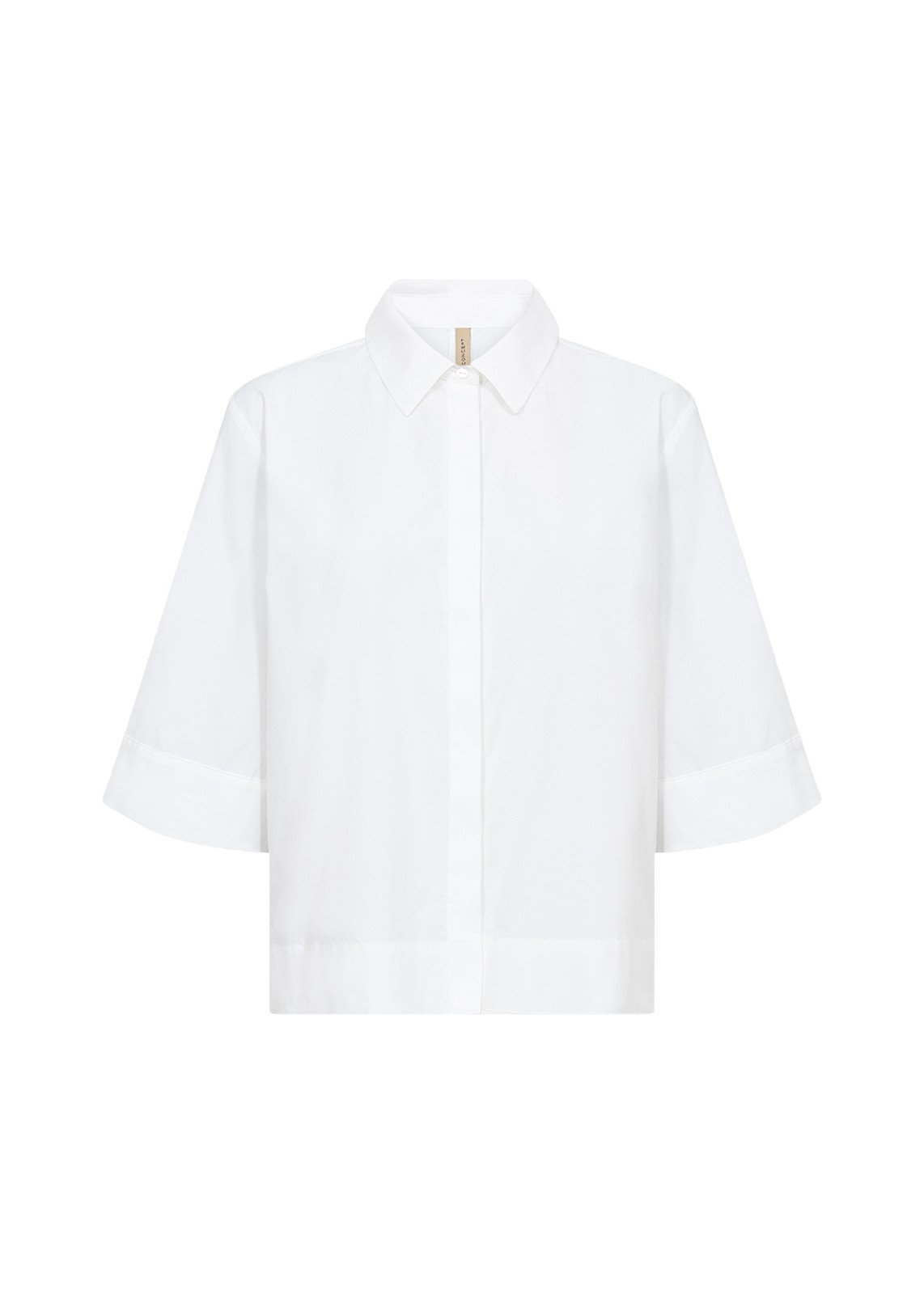 Super flot klassisk skjorte med et afslappet look. Skjorten er fra Soya Concept og har en klassisk krave, skjulte knapper samt korte, brede ærmer. Kan styles på mange måder.