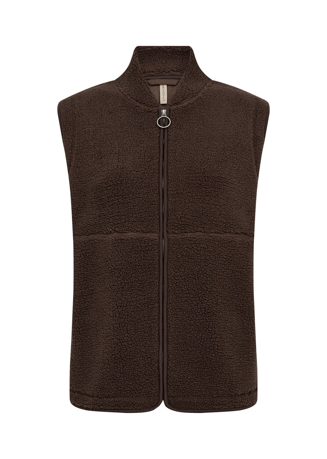 Soya Concept står bag denne skønne teddy fleece vest. Vesten har en høj hals, lynlåslukning og to lommer. Pasformen er løs og behagelig. Vesten holder dig dejlig varm.