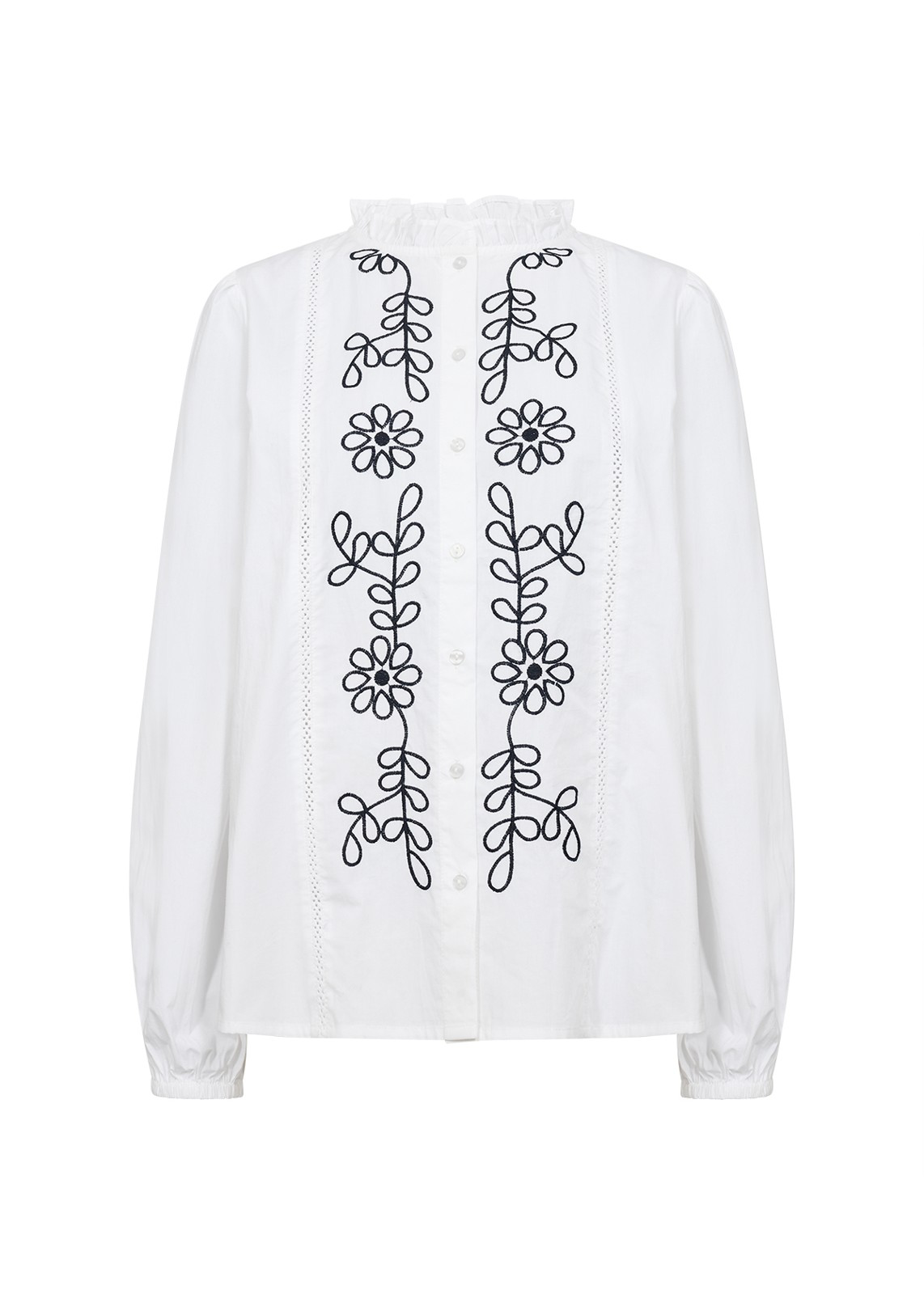 Fineste skjorte fra Culture med smukke detaljer ved krave og ærme. Skjorten fåes i flere farver og kan nem styles fx med en strik eller blazer over. Den knappes hele vejen ned.