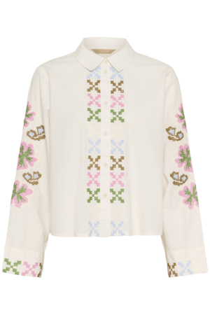 Fineste skjorte fra Culture med smukke detaljer ved krave og ærme. Skjorten fåes i flere farver og kan nem styles fx med en strik eller blazer over. Den knappes hele vejen ned.