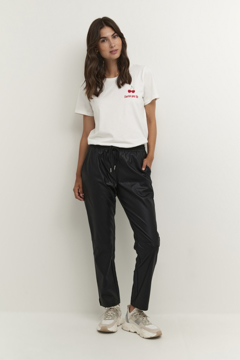 Super cool cargo buks med shine effekt fra Nümph. Bukserne har en løs pasform med en bred elastikkant i livet og nederst på benet. De kan styes både til hverdag og fest med både sneaks og stiletter.