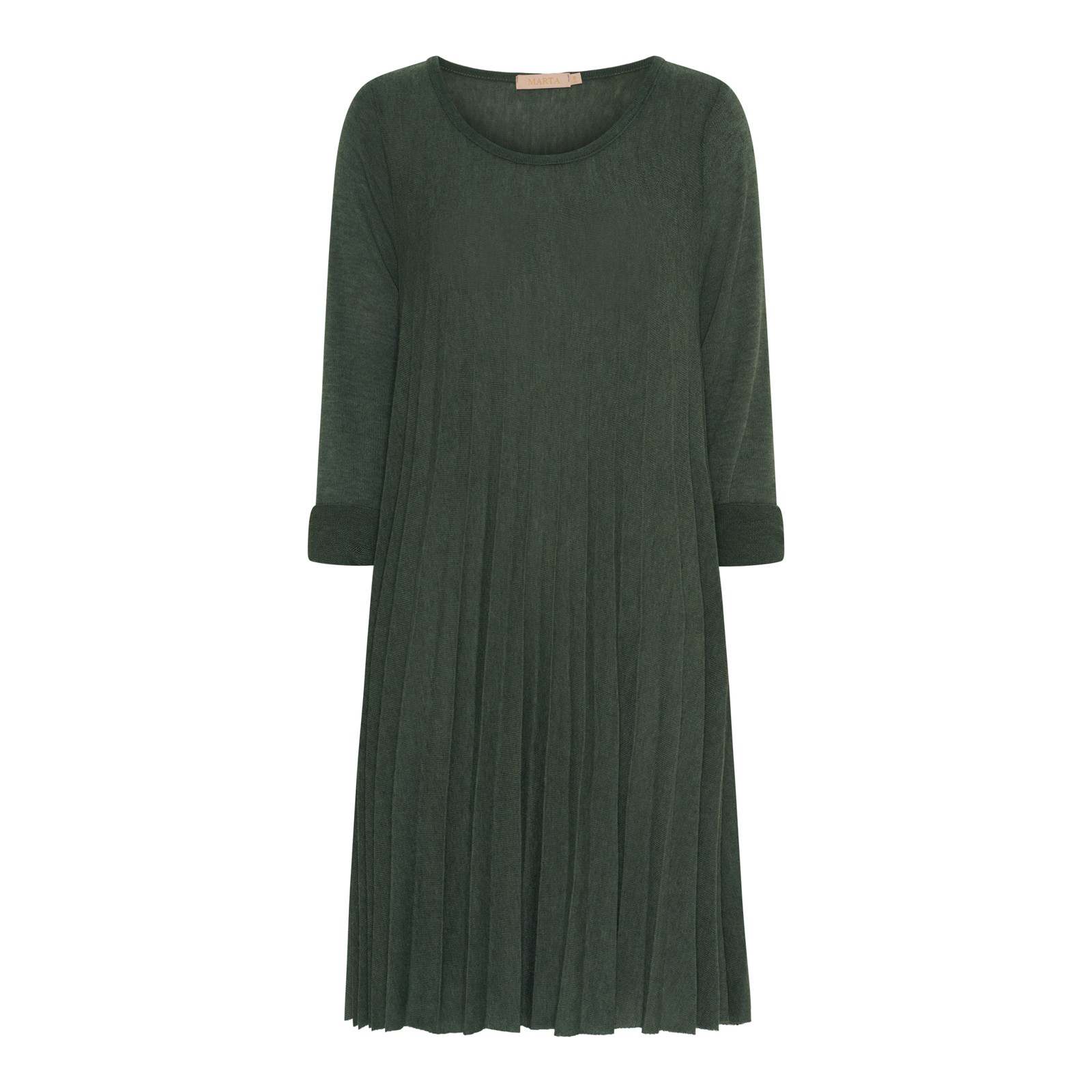Super lækker Marta strikkjole med plissé. Kjolen har en rund halsudskæring og lange ærmer. Den har en knælang længde og falder løst i en let A-facon. Meget anvendelig kjole som kan styles op og ned.