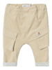 Mega cool Hummel bukser til dreng. De er i mørkeblå, hvor det nederste af buksebenene er brune. De er med lange ben og brede kanter. I livet har de en justerbar elastikkant, som kan strammes yderligere ind med en snøre fortil.