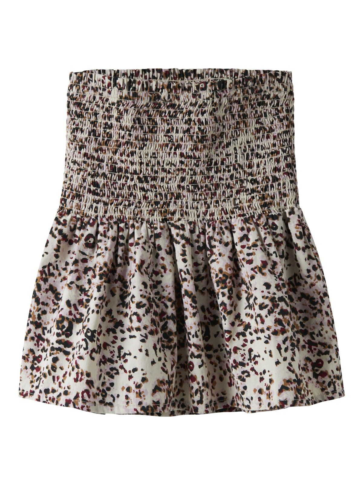 Super smuk kjole fra Name It i beige med fint blomsterprint over det hele. Kjolen har elastiske manchetter, knap og løkkelukning bagpå og er lav i taljen.