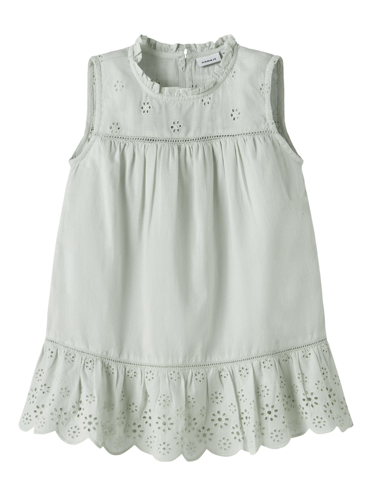Sej spencer fra name it med de fineste broderede sløjfer. Spenceren har justerbare seler, trykknaplukning ved skulderen og en brystlomme.
