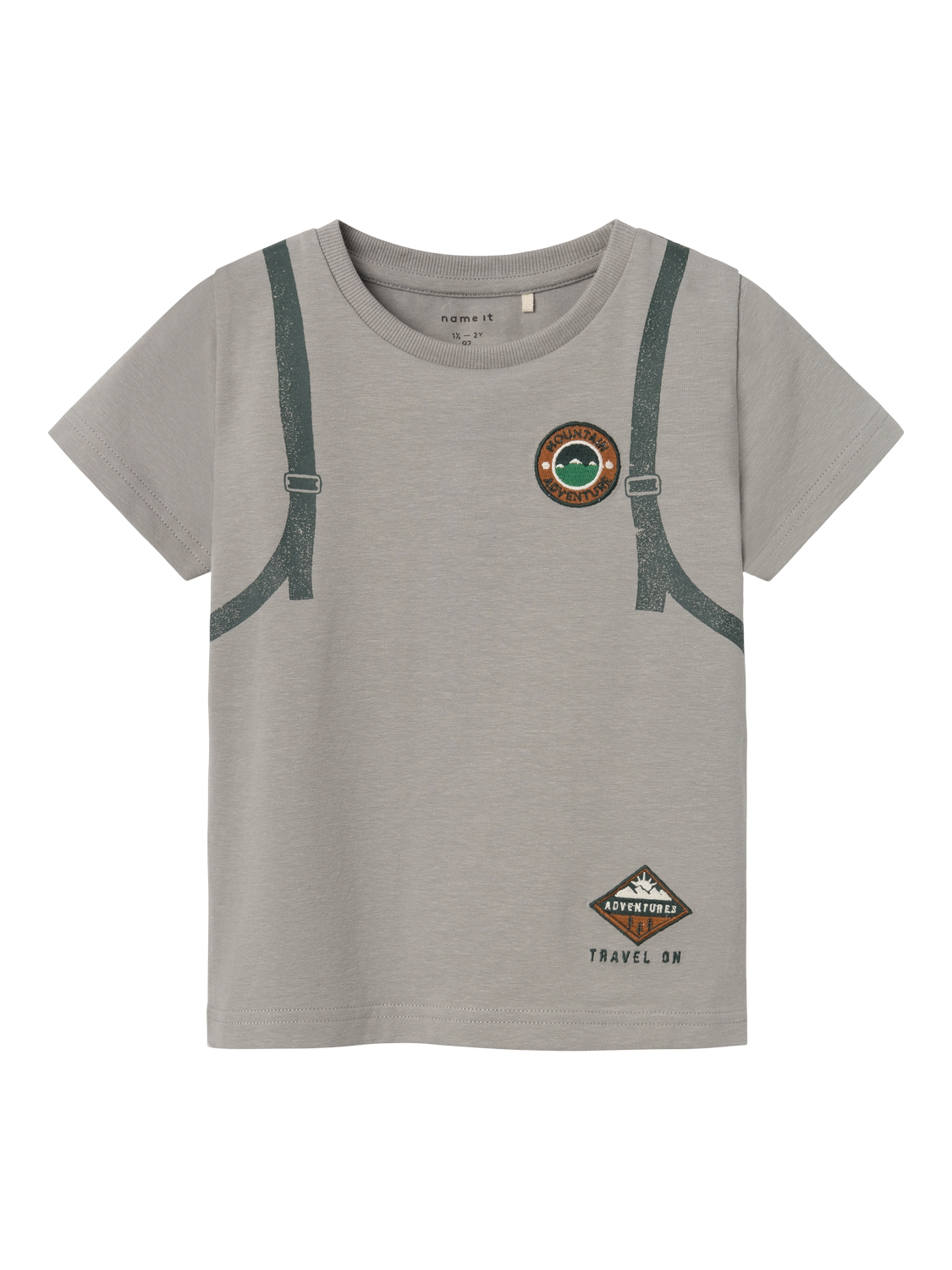 Smart t-shirt fra name it med korte ærmer. T-shirten har et sejt rygsække print på ryggen.