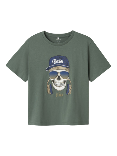 Super fin Hummel T-shirt til dreng i hvid med forskellige farver Hummel logo print over det hele. Den har korte ærmer og rib O-hals. Style den med et par fede jeans til.