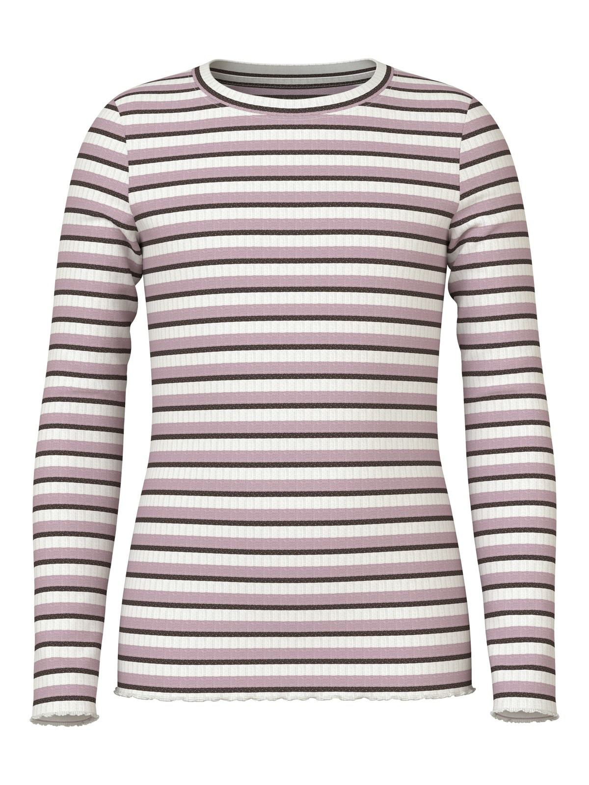 Super blød og smart Sweatshirt fra Name It til kids pige. Den er med O-hals, lange ærmer og sænkede skuldersømme. Den fåes enten i lilla eller pink og har manchetter i rib.