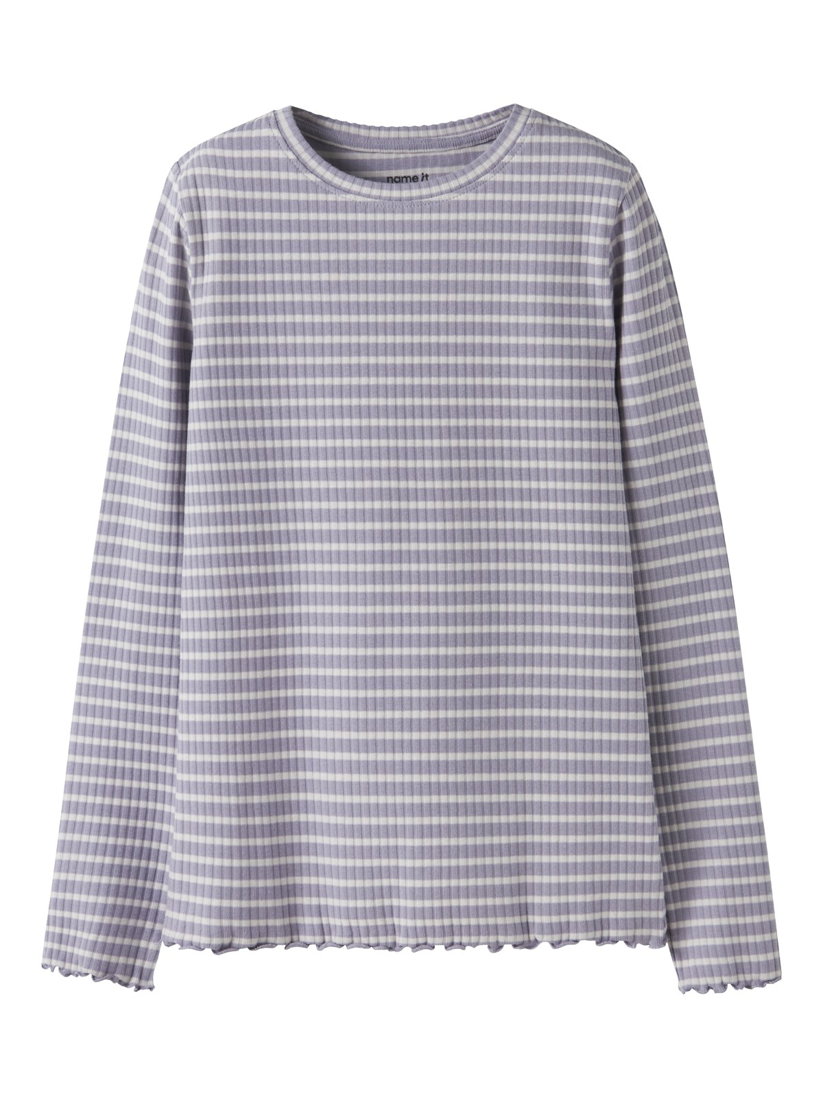 Super blød og smart Sweatshirt fra Name It til kids pige. Den er med O-hals, lange ærmer og sænkede skuldersømme. Den fåes enten i lilla eller pink og har manchetter i rib.