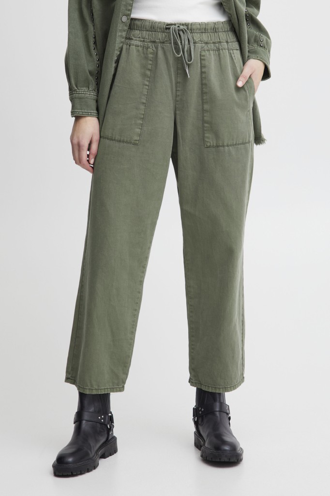 Klassisk pæn 7/8 buks fra Culture. De har et slim/ regulart fit og en almindelig talje. Fast linning foran og elastik i livet bagpå. Skrålommer og paspolerede baglommer. * 50% Bomuld * 46% Polyester * 4% Elastan