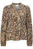 Flotte grå, creme, camel og sorte farver samlet i et fint mønster på denne fine bluse. Blusen fra Pulz Jeans har lange ærmer, som afsluttes med en smal elastik kant, fin v-udskæring og knapper ned foran.