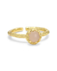 Smuk guld fingering med en lidt grov struktur og en sart rosa natur sten. Rinegen kan justeres efter tykkelse på finger. Pure By Nat laver deres produkter af genanvendt messing som derefter er håndyppet i først 1 gang sterling sølv også 2 gange i 24" genanvendt guld.