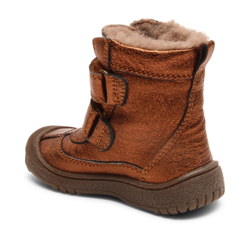 Lækker skindstøvle med goretex og foring. Goretex holder dit barns fødder varme og tørre i den våde og kolde vejr. Støvlen har har velcrolukning, der gør det nemt for dit barn selv at spænde støvlen.