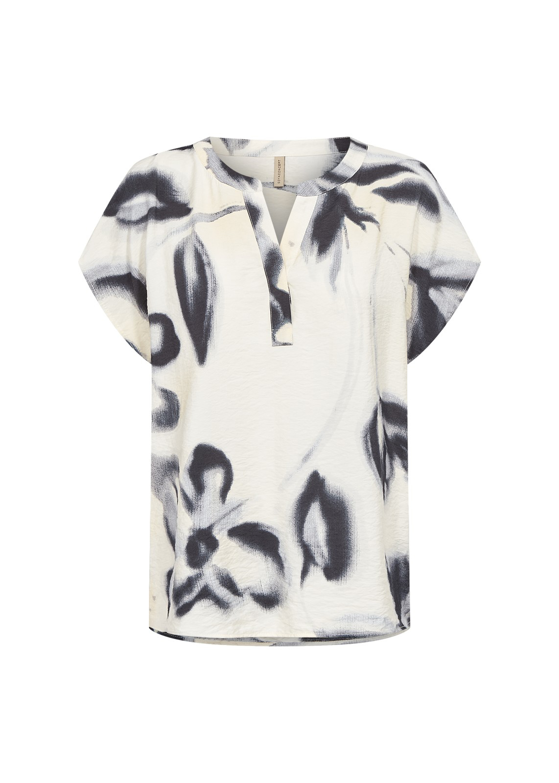 Smuk viskose bluse fra Culture i skønne forårs nunancer. Blusen et kort løst ærme med flæsedetalje, en fin v-udskæring og en løs pasform. Style den til shorts, hørbukser og jeans alt efter lejligheden.