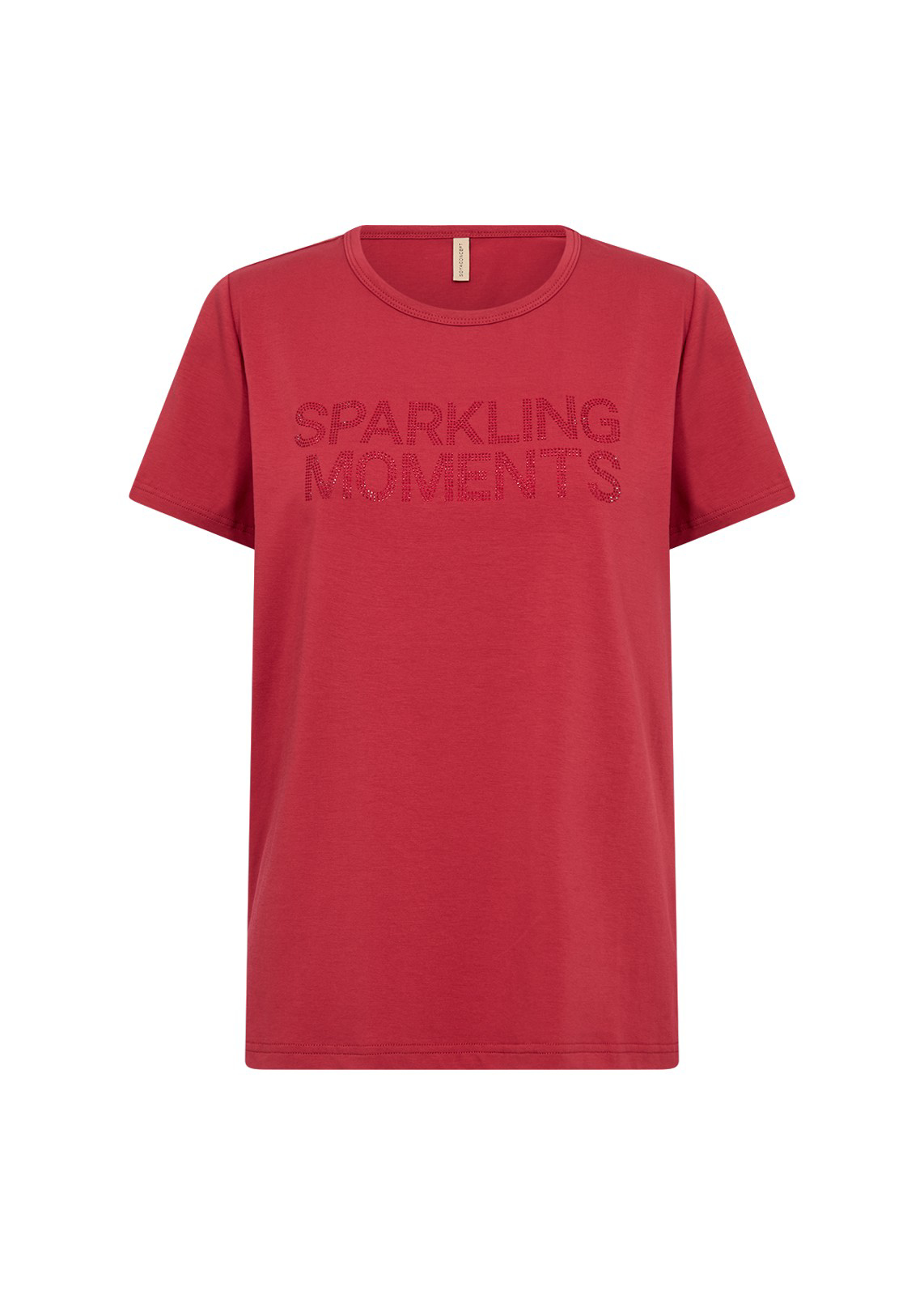 Rina er en lækker bomulds T-shirt med korte ærmer fra Soya Concept. Den har en rund halsudskæring og et diskret tekstprint foran. Brug denne cool T-shirt sammen med dine yndlingsjeans eller under en jakke for et trendy look.