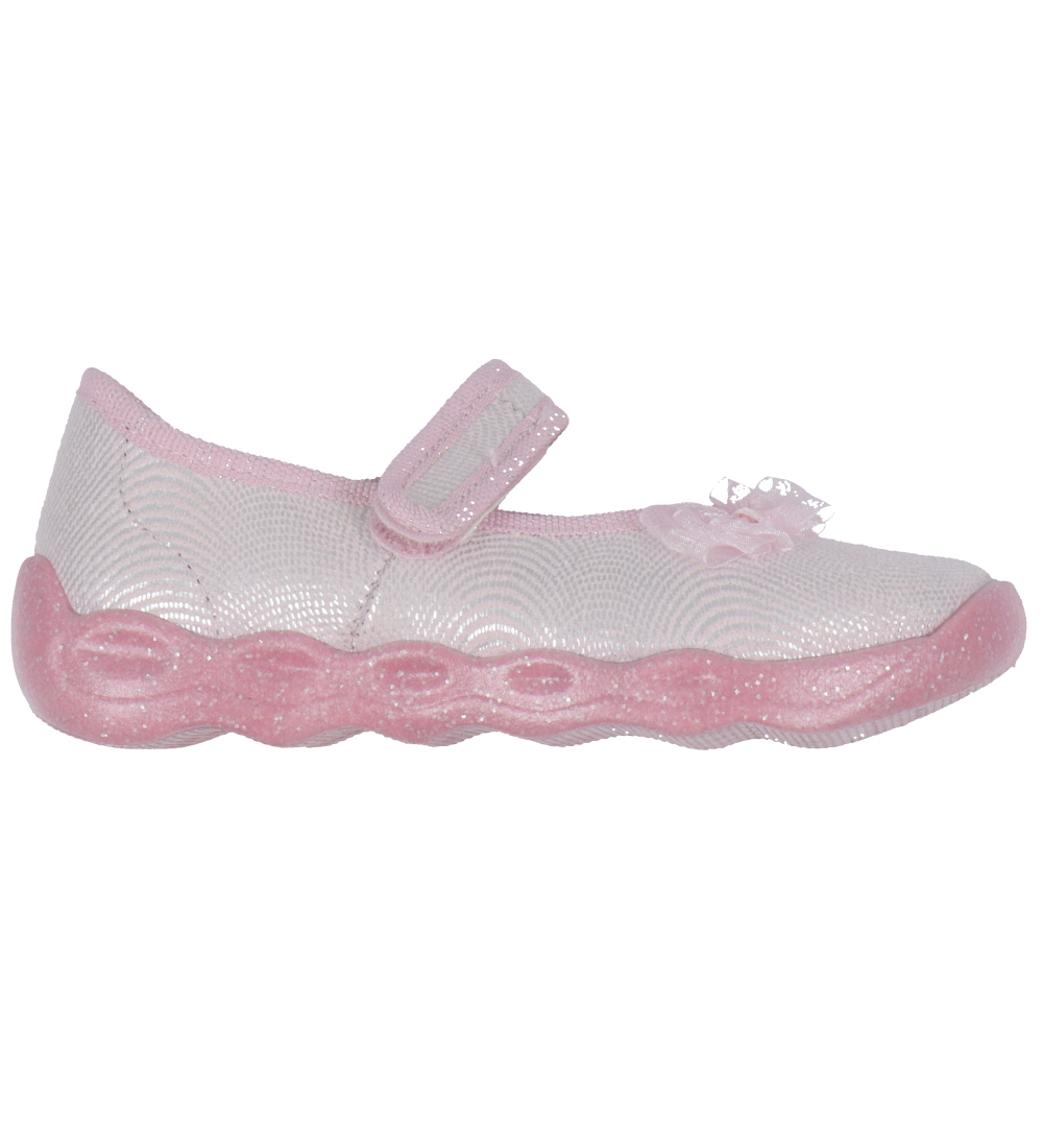 Futterne er med glitter og regulerbar strop, som sikrer at den altid sidder godt om anklen, samtidig med at de skridtsikre gummidutter på sålen gør det sikkert at komme omkring.